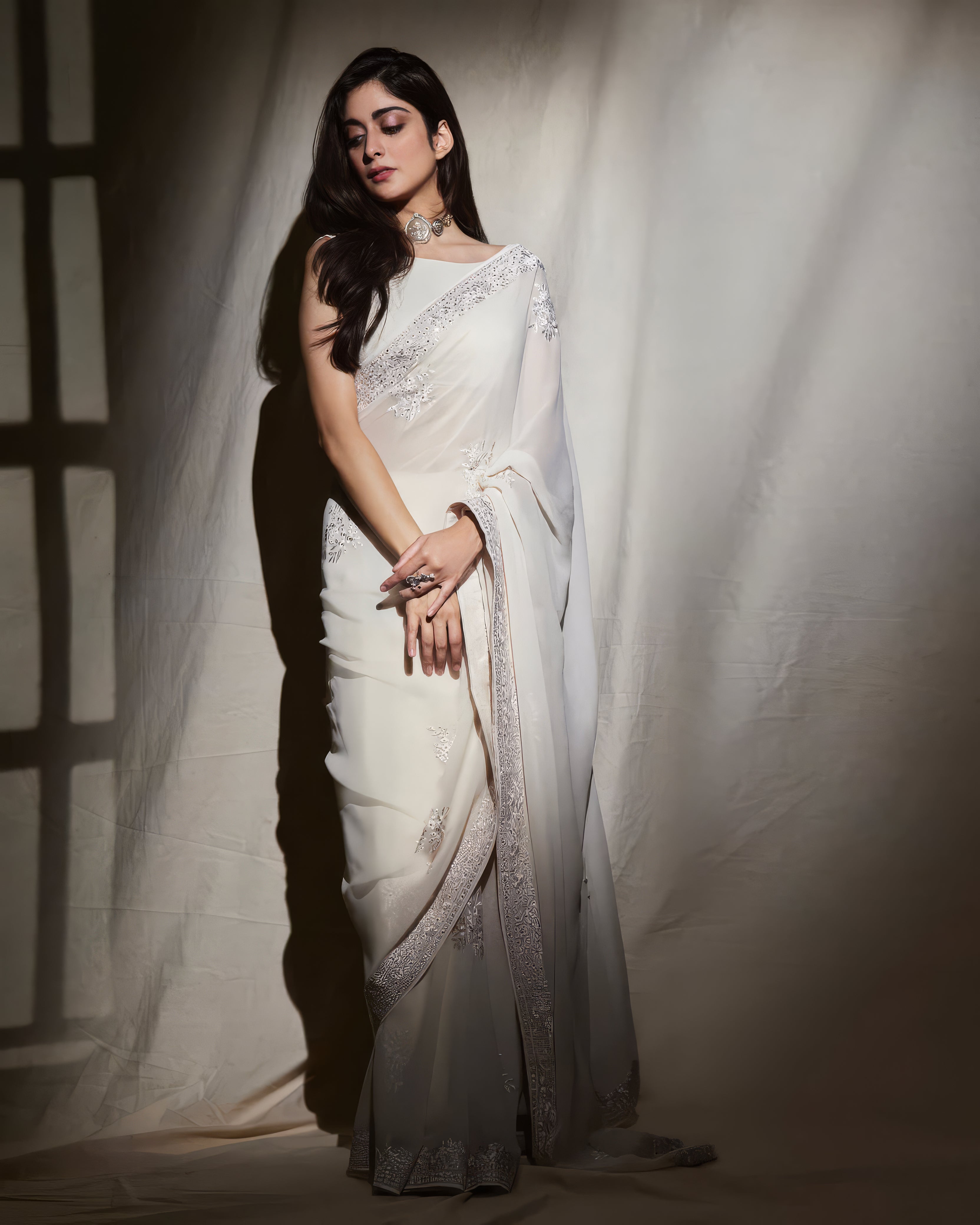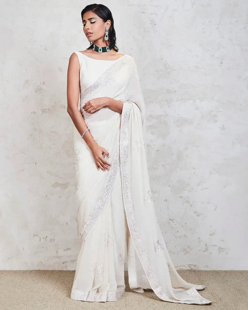We love traditional Indian designer wear, infused with a little creativity and eccentricity. Here's a gorgeous blend, to give you the textured appearance of Tussar and the easy drape of Georgette. Exactly how our last collection called Urvi festive has been designed.