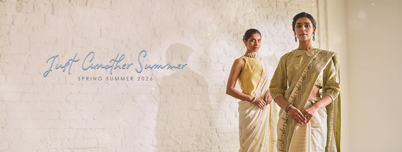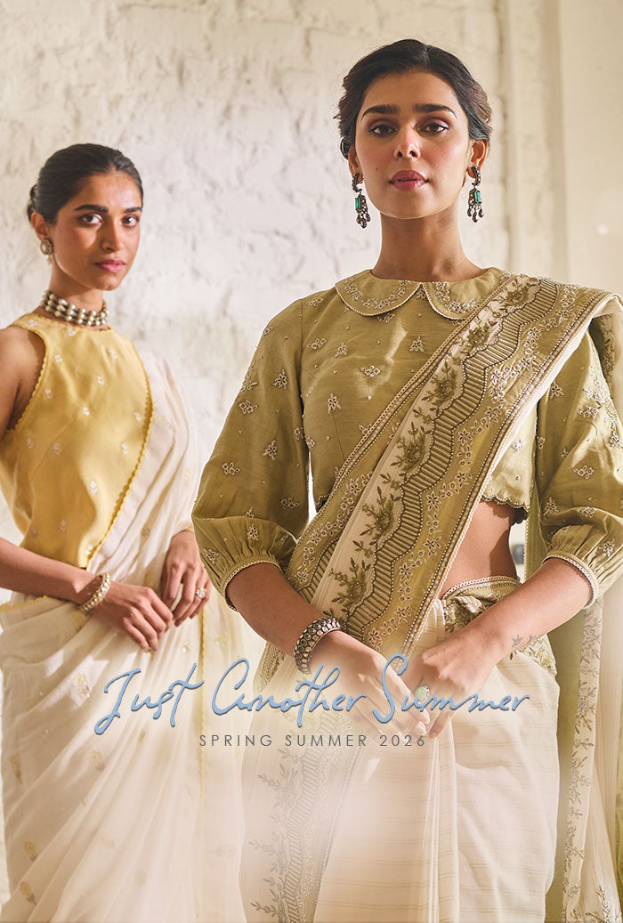 We love traditional Indian designer wear, infused with a little creativity and eccentricity. Here's a gorgeous blend, to give you the textured appearance of Tussar and the easy drape of Georgette. Exactly how our last collection called Urvi festive has been designed.