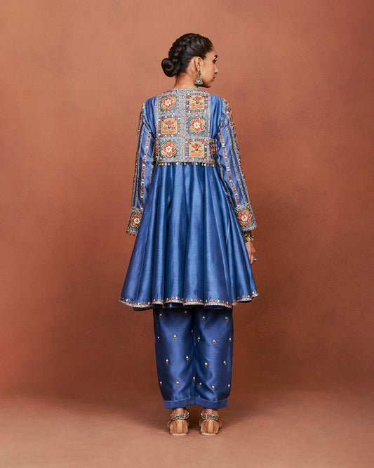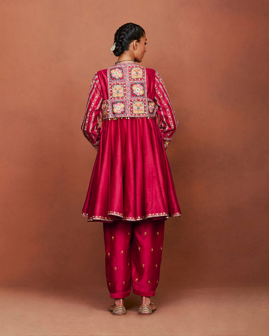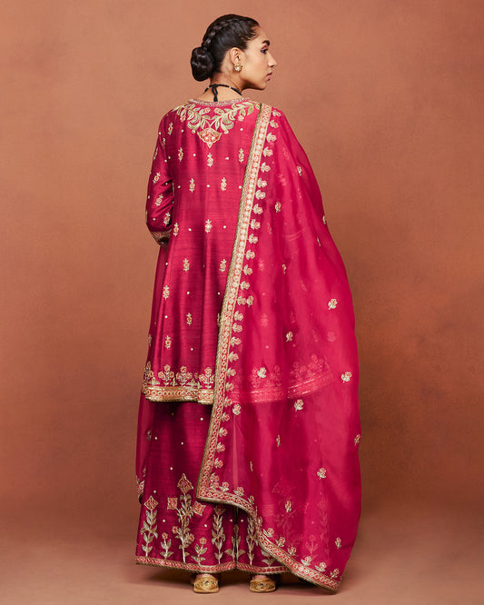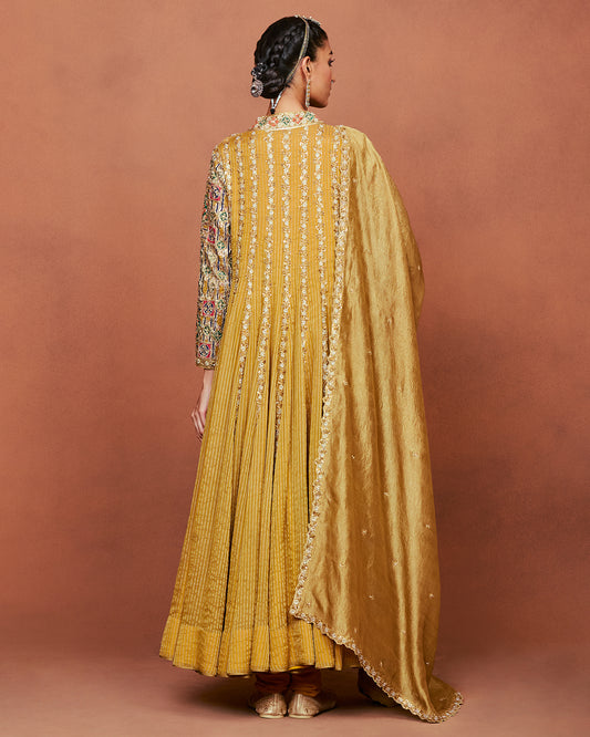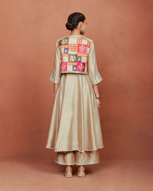There are many types and pattern of anarkali dress that you can choose from. There are floor-length anarkali sets for formal events like weddings and receptions. Brides can choose a large anarkali for pre-wedding festivities such as mehendi or haldi, especially if they want to avoid wearing a lehenga or sari. Rich embellishments, layered flares, and sumptuous fabrics enhance the bridal look. We have many long pattern Anarklai dress sets. One of which is the very famous Kalidar sets made from raw silk and gorgeous chanderi mul mul fits too. These are so comfortable that you twirl in them. Very easy to carry and will suit most celebrated events in your life. Also, the very famous Radha Anarkali set from the Threads of Love collection is a beige raw silk, high-waisted Anarkali with multi-colored aari work, sequins, and pearl embroidery. Paired with an embroidered fuchsia Banarasi palazzo and a shaded handwoven cotton tissue dupatta.