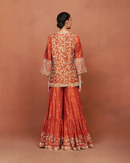Our organza Gharara sets embody the brand's philosophyโa testament to sophisticated handloom artistry. At Sue Mue, we understand that an outfit is a personal treasure. Our team of expert designers and master artisans tailor each Parsi embroidery ghagra set to perfection, ensuring it not only fits your measurements but also your aesthetic aspirations. Imbue your wardrobe with the spirit of traditions, elegantly reinterpreted for today's discerning woman.