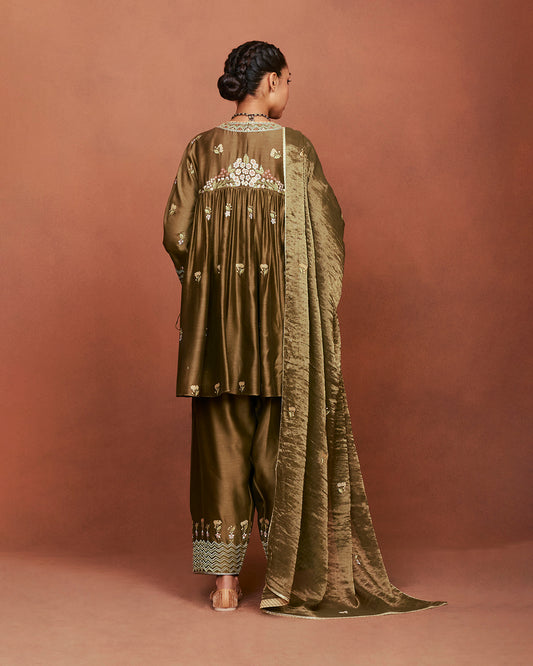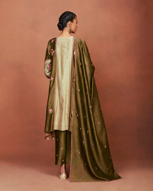 Leya olive green long kurta set