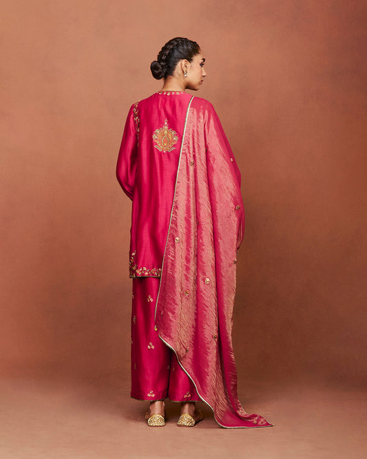 Zoa deep red short kurta set