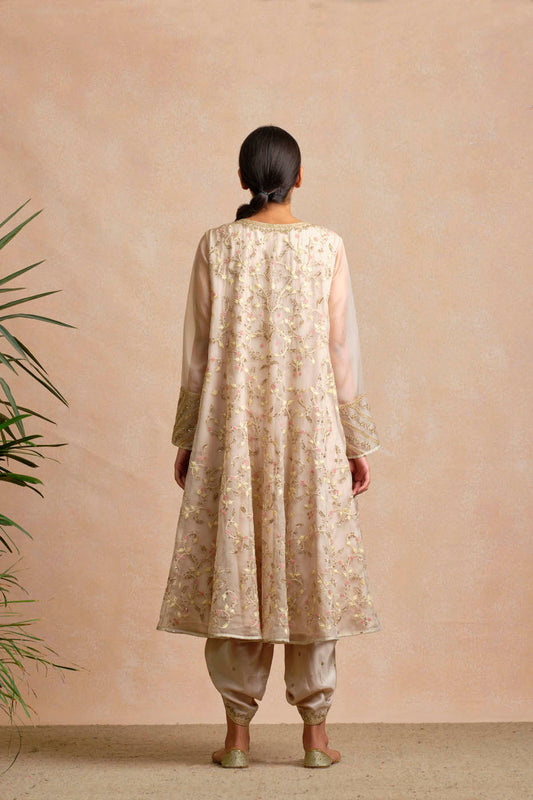 The Sagan collection showcases a variety of traditional crafts such as Aari embroidery, Appliquรฉ, Cutwork, and Dori embroidery. Each piece is a testament to the skill and dedication of artisans who meticulously create these works of art. The intricate detailing on every garment reflects a rich legacy of textile craftsmanship that has been preserved and reimagined for today's fashion-forward clientele.