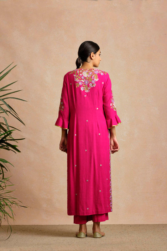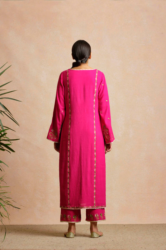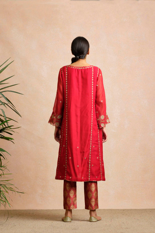 Sue Mue's Sagan collection features luxurious fabrics like handwoven Pure Chanderi, Georgette, Handloom Mulmul, and Silk Organza. These fabrics not only add a touch of sophistication but also ensure comfort and ease of movement, making them ideal for long celebrations. Whether it's a handwoven Chanderi Sagan kurta set or a flowing Silk Organza Sagan saree set, each garment is designed to make you feel regal and elegant.