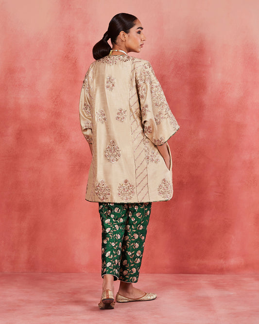 The Sagan collection showcases a variety of traditional crafts such as Aari embroidery, Appliquรฉ, Cutwork, and Dori embroidery. Each piece is a testament to the skill and dedication of artisans who meticulously create these works of art. The intricate detailing on every garment reflects a rich legacy of textile craftsmanship that has been preserved and reimagined for today's fashion-forward clientele.