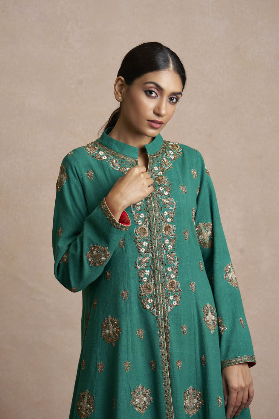 For five decades,ย Sue Mueย has made an art of itsย bespoke tailoring servicesย and its marriage of emotion and craft.We understand thatย each outfitย is very special for you, and we are driven by a passion for excellence and relationships based on reliability and trust. Sue Mueโ€™s team of designers and masters will not only create your favourite piece according to your measurements, we will even suggest other fabrics or embellishments that best suit your needs. To get yourself a customised ensemble, book an appointment with us, either in person at our flagship store in New Delhi or virtually, and enjoy the experience.To know more about this product, please Contact Us