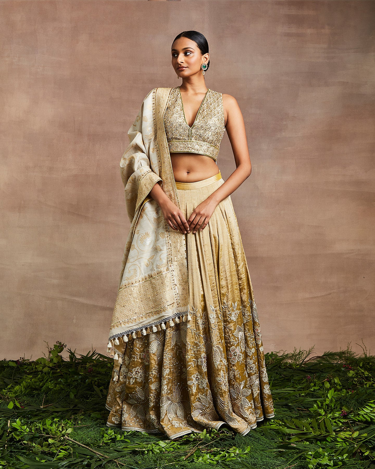 Introducing our stunning Yellow Gold Handwoven Silk Tissue Lehenga and Blouse Set, meticulously handcrafted with intricate hand embroidery. The mesmerizing yellow gold hue and luxurious silk tissue fabric exude opulence and grace. Complete with a beige handwoven Banarasi dupatta, this ensemble captures attention with its enchanting allure. Crafted with precision and attention to detail, it's perfect for those seeking a timeless regal look. Whether it's a wedding, festive celebration, or special occasion, feel like royalty in this epitome of grace and sophistication.