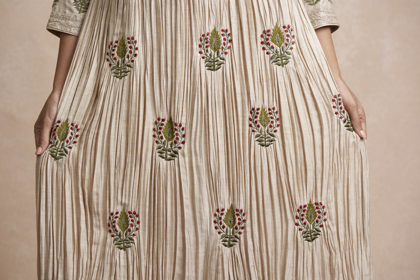 For five decades,ย Sue Mueย has made an art of itsย bespoke tailoring servicesย and its marriage of emotion and craft.We understand thatย each outfitย is very special for you, and we are driven by a passion for excellence and relationships based on reliability and trust. Sue Mueโ€™s team of designers and masters will not only create your favourite piece according to your measurements, we will even suggest other fabrics or embellishments that best suit your needs. To get yourself a customised ensemble, book an appointment with us, either in person at our flagship store in New Delhi or virtually, and enjoy the experience.To know more about this product, please Contact Us