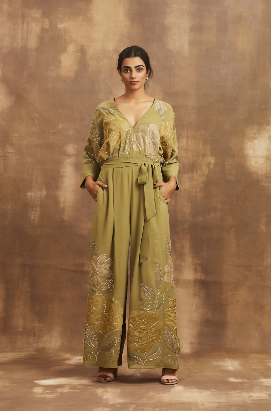 Embroidery tonal floral patch work embroidery with sequins highlights.