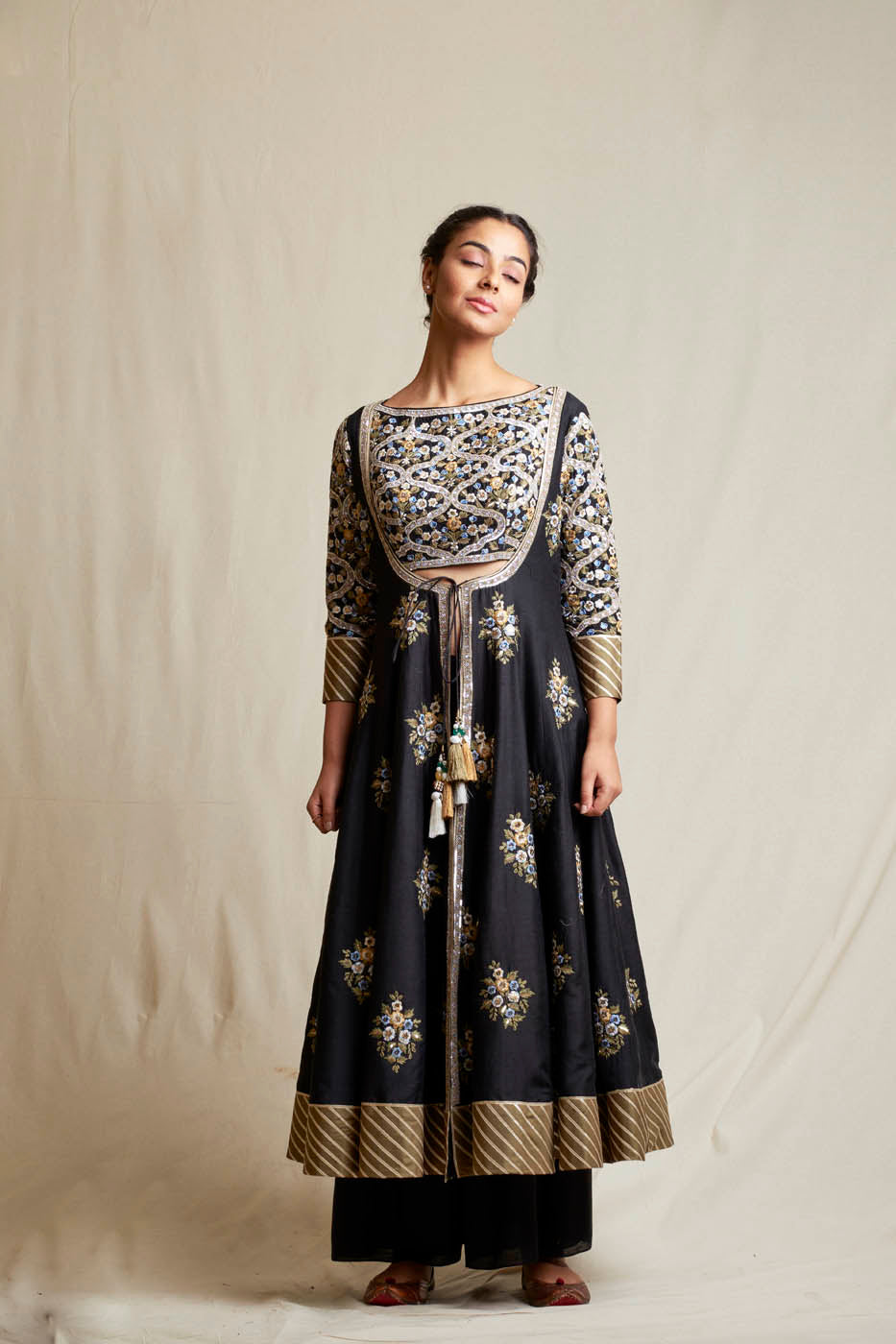 This is a standard measurement chart. However, the look and feel of each ensemble is different and each silhouette will have its own fit once you wear it. To order a bespoke outfit as per your body measurements, book an appointment here.