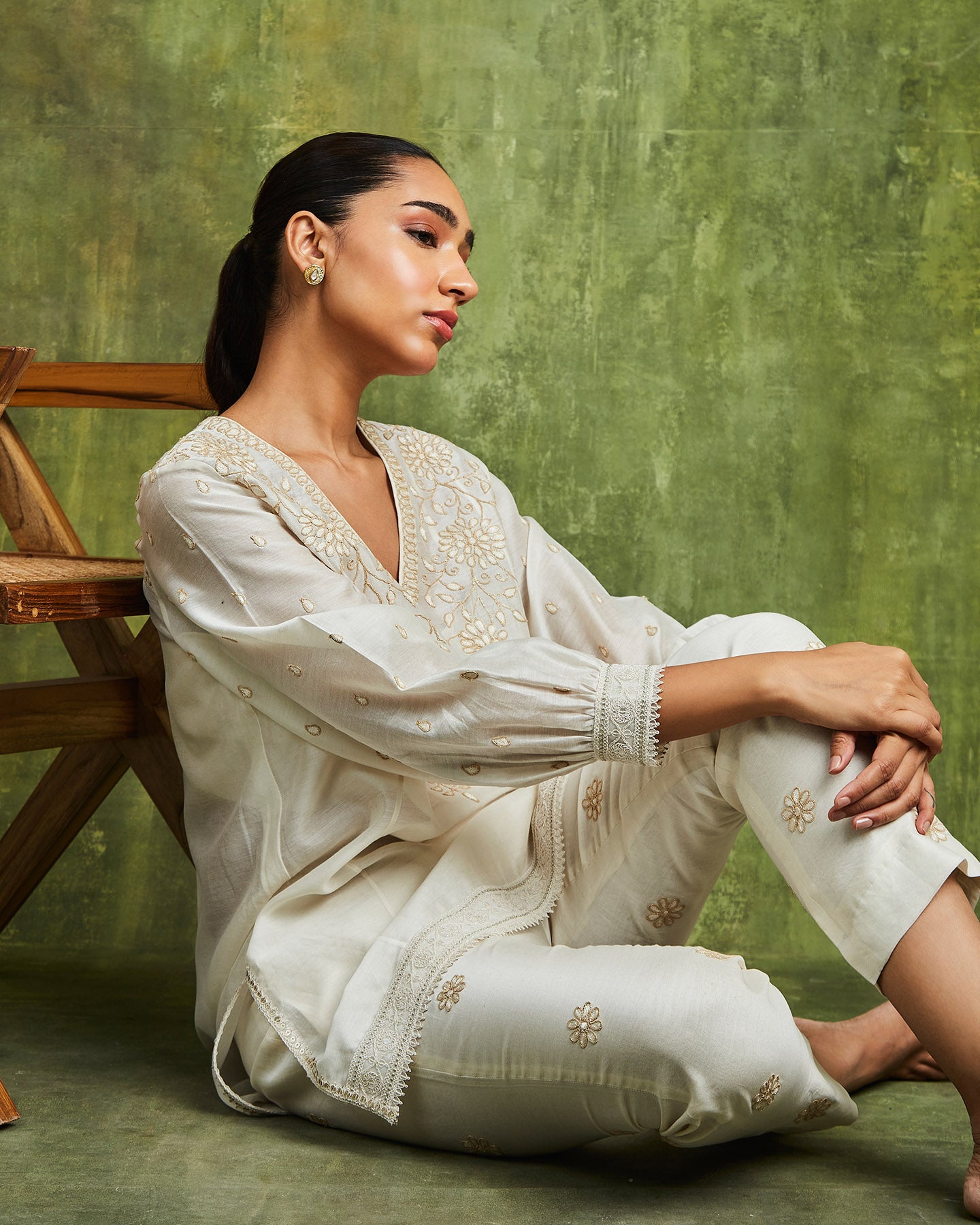 Introducing our exquisite Off-White Chanderi Co-ord Set, a perfect blend of elegance and style. This set features intricate tonal dori embroidery and delicate lace detailing, adding a touch of sophistication. Crafted with care, the set comes with a comfortable inner, ensuring a seamless fit. Embrace the beauty of this ensemble and make a statement at any occasion or event. Elevate your fashion game with this off-white chanderi co-ord set, designed to enhance your grace and leave a lasting impression.